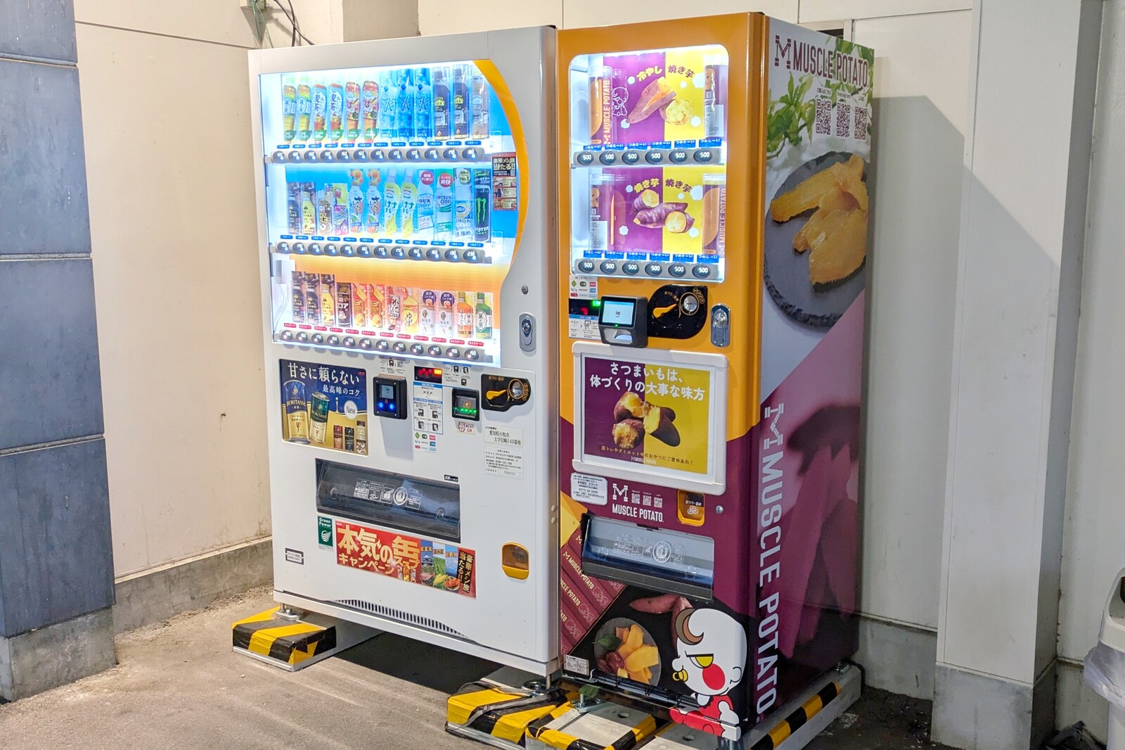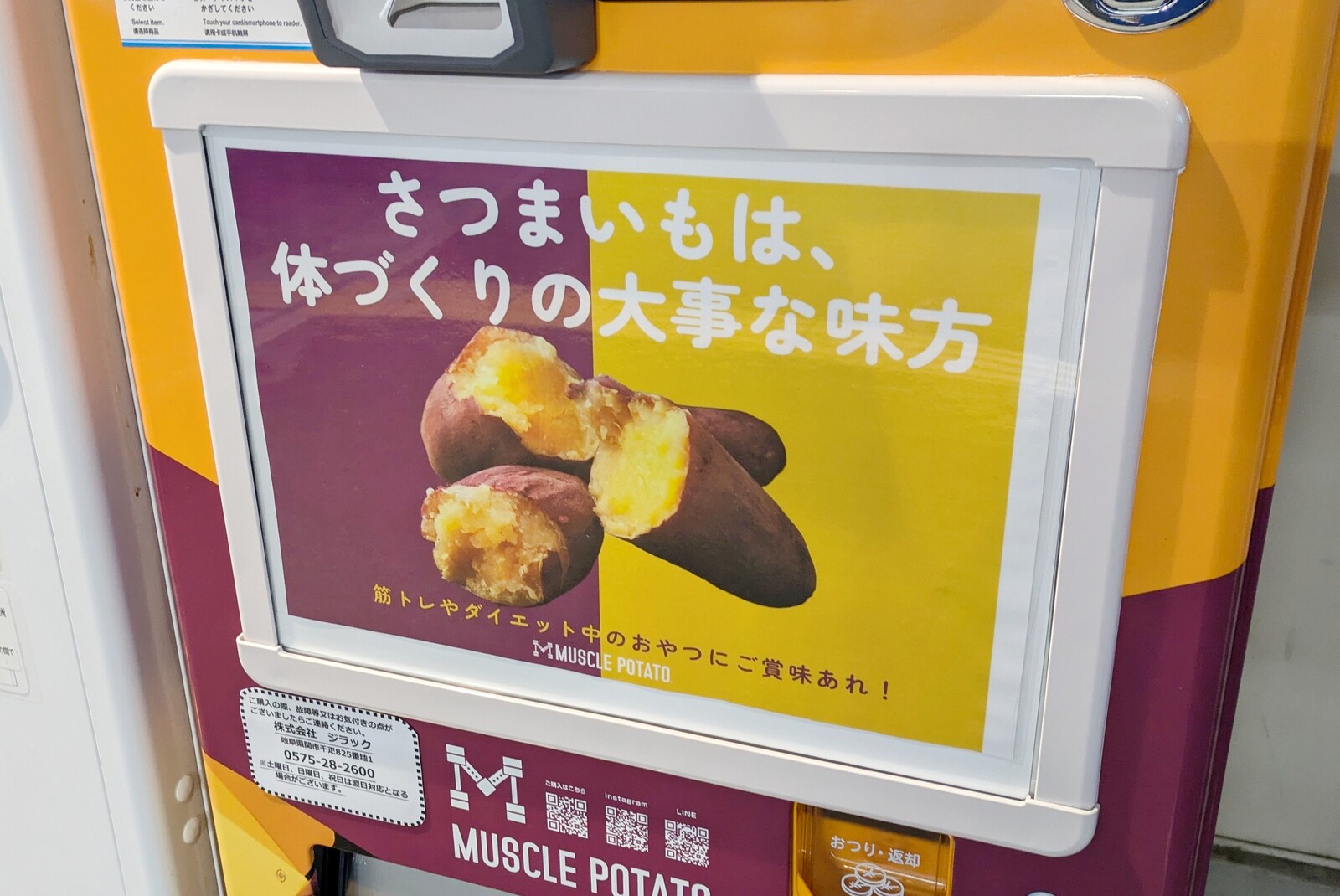 マッスルポテトが出している自販機で、筋トレやダイエット中のおやつにご賞味あれ!とのこと。
