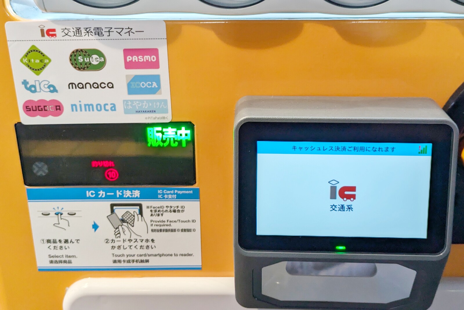 交通系電子マネーでも決済可能。今は色んな支払い方法に対応している自販機が増えて便利になりましたね。